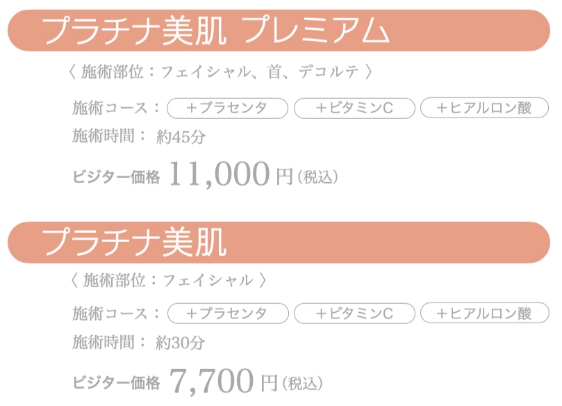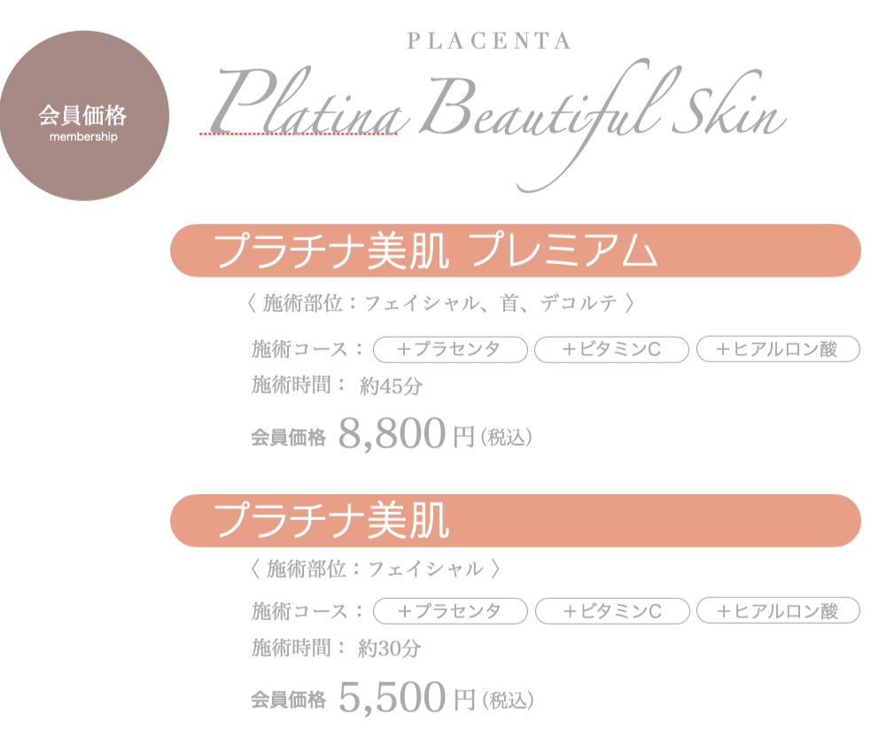 国産プラセンタ使用の“プラチナ美肌”¥7,700円。