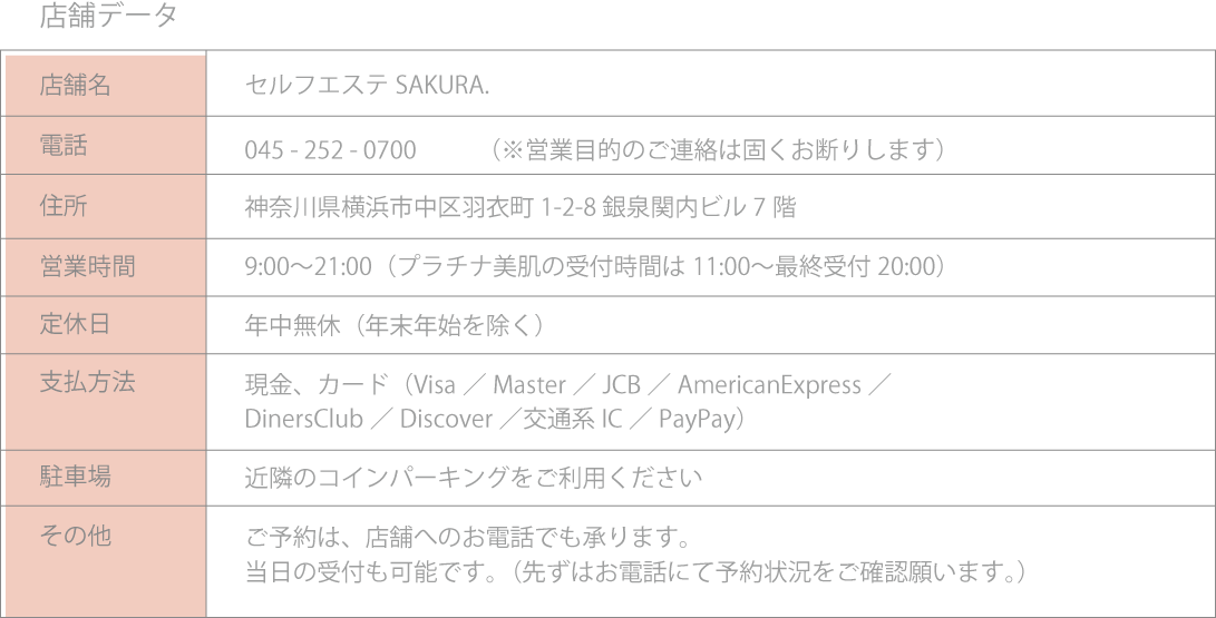 | 店舗名 | セルフエステ SAKURA. |